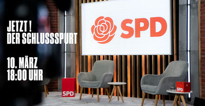 Am Mittwoch, 10. März um 18.00 Uhr findet unsere digitale Veranstaltung JETZT! - DER SCHLUSSSPURT statt. Wir senden live aus dem Studio und trommeln für die SPD, unsere Inhalte und unsere tollen Kandidierenden mit unserem Andreas Stoch an der Spitze. Wir wollen mehr Tatkraft in die Regierung bringen und setzen uns für ein moderneres und sozialeres Baden-Württemberg ein.